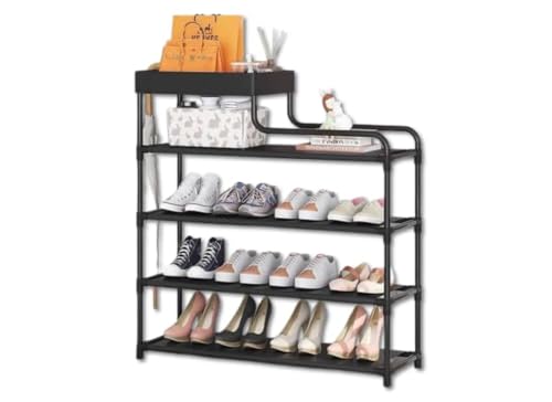 Generic - رف أحذية متعدد الطبقات، 5 مستويات، رف تخزين معدني أسود مع رف علوي للكتب والديكور، تصميم عصري