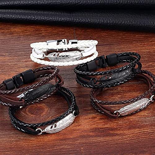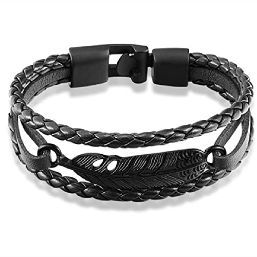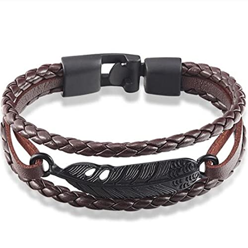 GCTEEBR - Multi-Layer Woven Leather Bracelet Men's Feather Bracelet Fashion Personality Men's Hand Ornaments