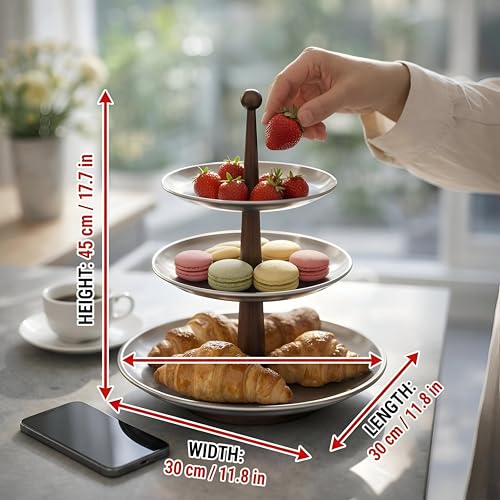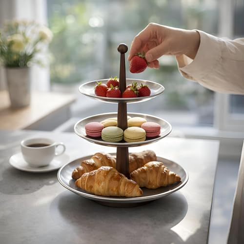 - This elegant stainless steel and wood dessert stand features a multi-layer design (2 or 3 tiers) that beautifully showcases fruits, cakes, and savory treats, adding a refined touch to birthday parties, weddings, holidays, or daily home decor—perfect for hosts who value sophistication and functionality.