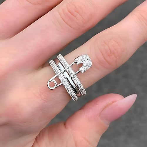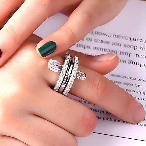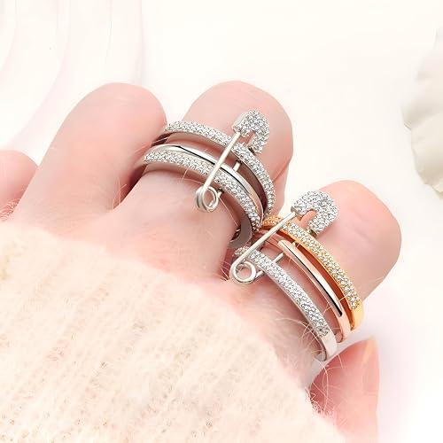 Generic - وصلات متعددة الوصلات - خواتم عصرية على شكل دبوس امان مع زركونيا مكعب زركونيا مكتنزة للنساء، مجوهرات مكتنزة وهدايا انيقة