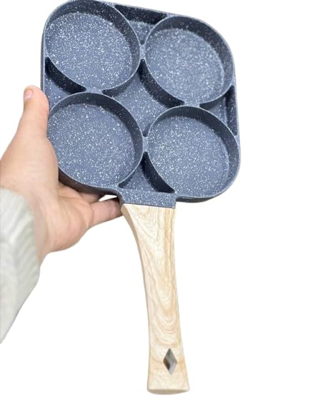 Generic - طاسة القوالب المتعددة بمقبض خشبي أنيق - مقلاة غير لاصقة لعمل البيض والبان كيك والعجة والقطايف بلمسة واحدة ومنظمة k