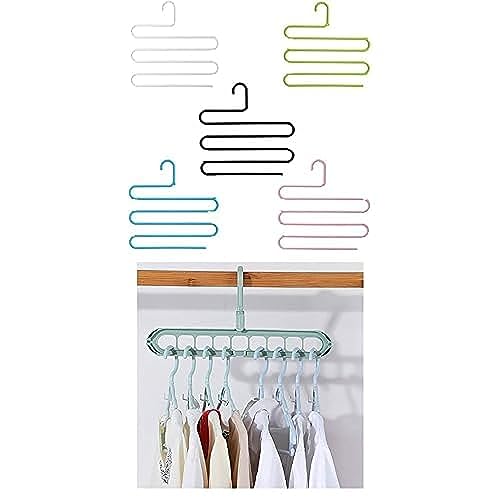 Generic - Multi pants hangers rack for closet organization,stainless steel s-shape 5 layer clothes hangers - assorted colors + 360 Rotating Multi-function 9-hole Space Saving Hanger