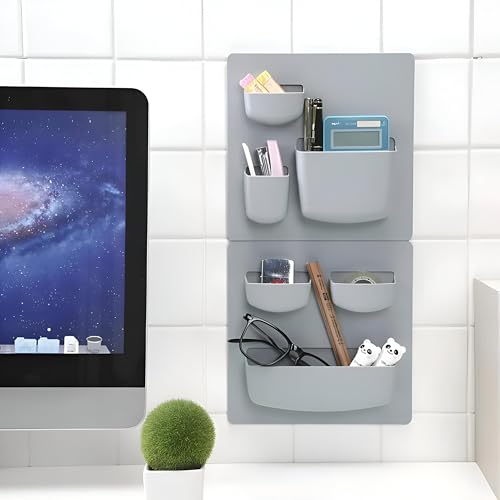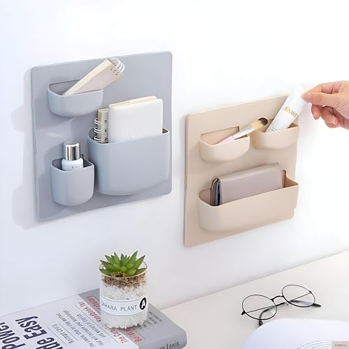 Generic - Multi-Pocket2from Organizer - Adhesive wall-mounted unit with small, medium, and large pockets for keys, coins, kitchen and bathroom supplies, remotes, and stationery, available in bright colors