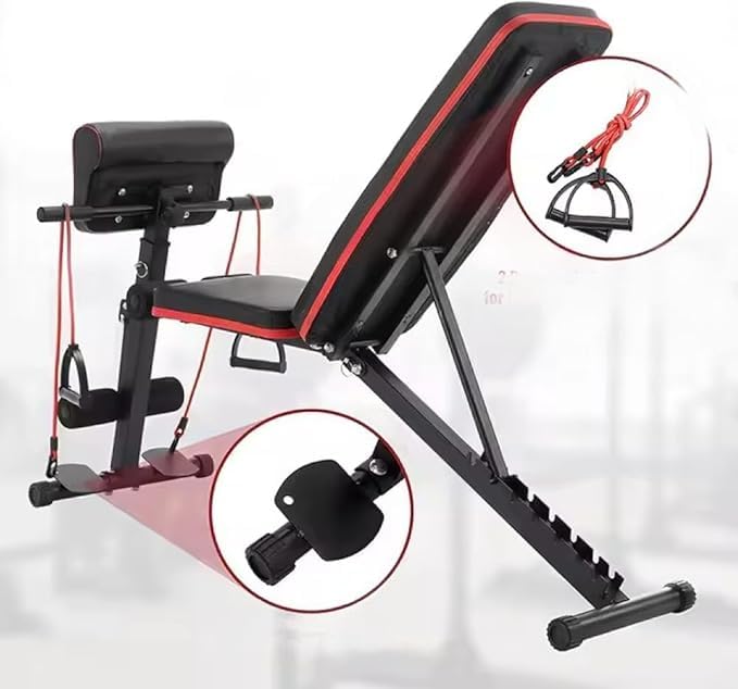 - Multi-position fitness bench: adjustable in 7 different positions, fully foldable, supports up to 150 kg, non-slip base, includes 2 leagues
