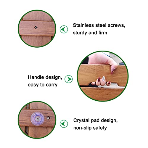 - Unique Design The bottom is fixed with stainless steel nails, which are firm and not easy to loosen. The built-in non-slip crystal footrest can firmly grip the floor and will not slip when bathing, which increases safety. Even the gaps between the slats allow for quick water flow and maintain good air circulation. The handle design makes it more convenient to take and place and increases convenience.
