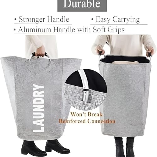 - This foldable laundry basket features sturdy metal handles, making it easy and comfortable to carry even when fully loaded, ensuring you can transport it seamlessly around your home or during outdoor activities without straining your hands or losing grip.