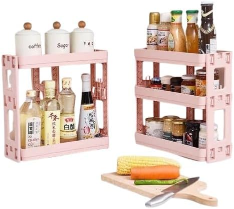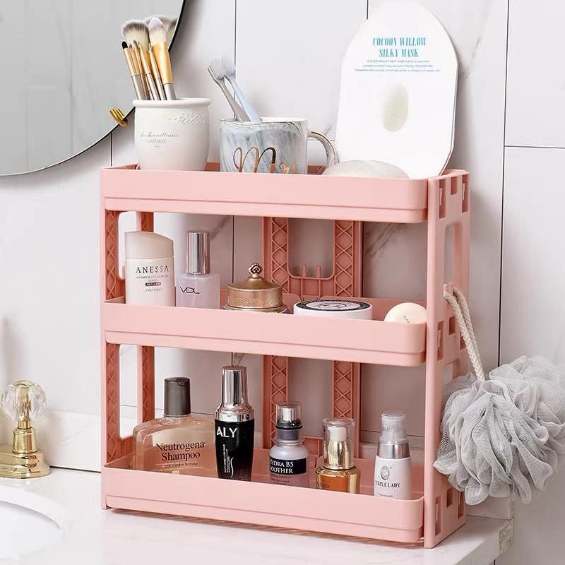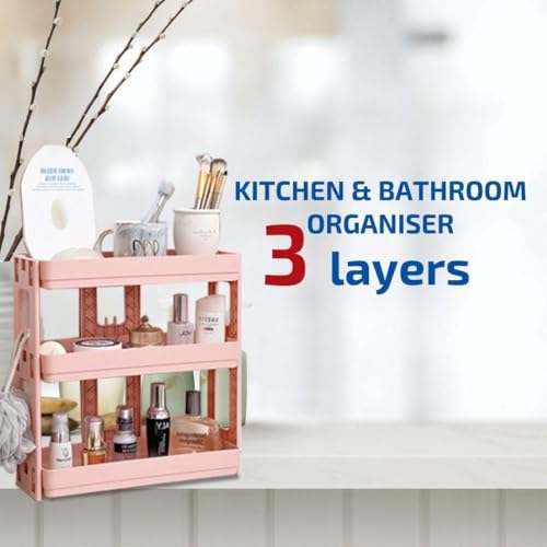 Generic - Multi-Purpose Bathroom & Kitchen Organizer – 3 or 4-Tier Storage Rack for Toiletries, Perfumes, Soap, and Kitchen Essentials | Gray & Pink (Three Tier (pink))