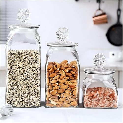 Generic - برطمانات زجاجية شفافة متعددة الأغراض، قابلة لإعادة الاستخدام بإغلاق آمن لتخزين الطعام الطازج وسهولة الوصول، مجموعة من 3 برطمانات