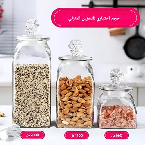 - مصممة لزيادة كفاءة المساحة، تساعدك هذه البرطمانات على تنظيم مطبخك بشكل أفضل من خلال تقليل الفوضى وتحرير مساحة الدولاب وجعل الوصول إلى المكونات أسهل بفضل شكلها الموحد والمدمج.
