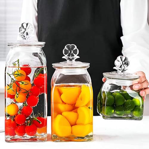 - متعددة الاستخدامات، هذه البرطمانات الزجاجية المربعة مثالية لتخزين الحلوى أو حبوب القهوة أو الفواكه المجففة أو الوجبات الخفيفة الأخرى، مما يساعدك على الحفاظ على مطبخك مرتبًا والمكونات طازجة لفترات أطول.