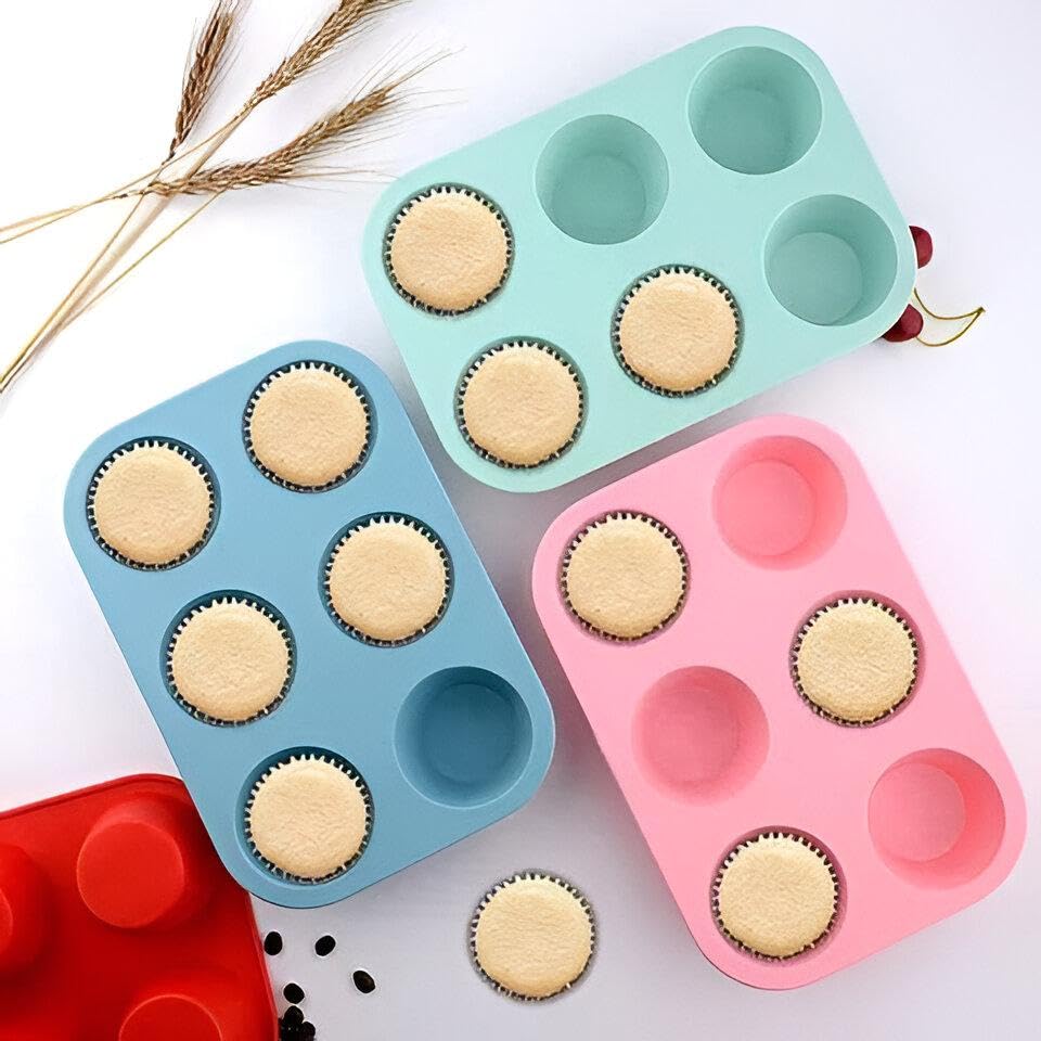 Generic - Multi-Purpose Mold - 6-cavity round silicone mold for cakes, chocolates, soaps, candles, and baking essentials with non-stick surface.
