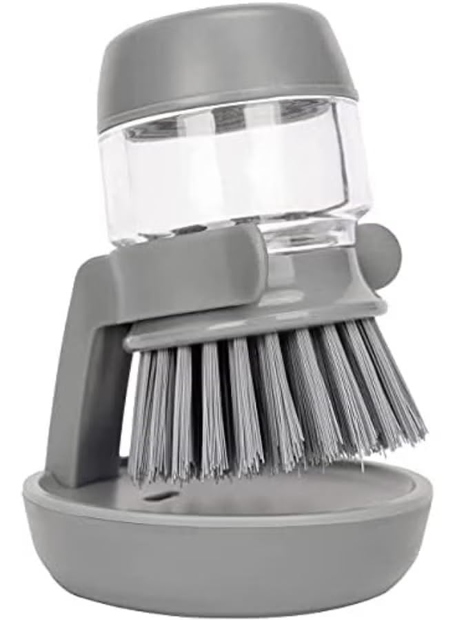 Generic - Multi-Surface Dish Brush with Soap Dispenser, Grey, Suitable for Porcelain, Metal, Ceramic, Stainless Steel
