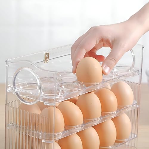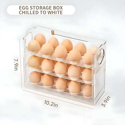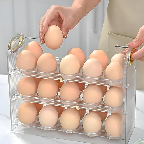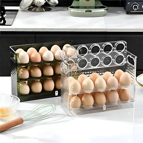 - Three‑tier acrylic egg organizer designed for modern kitchens, holding up to 30 eggs (22 × 26 × 9 cm). Its transparent construction lets you see contents at a glance, while the sturdy lid keeps eggs protected and fresh.