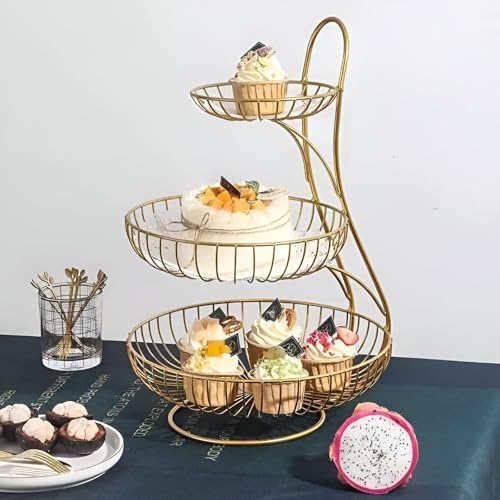 Generic - Multi-Tier Organizer - Stylish Circular Fruit Basket with 2 or 3 Layers, Perfect for Kitchen and Bathroom Use, Crafted from Sturdy Rust-Resistant Iron for Ample Storage of Fruits and Veggies (3 دور)
