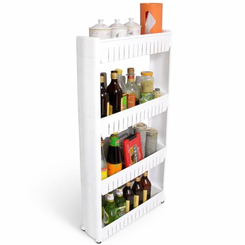 - COMPACT DESIGN FOR SMALL SPACES – The slim and practical structure fits neatly into narrow corners, between cabinets, or beside appliances. It helps utilize unused spaces efficiently, making it perfect for apartments, small kitchens, dorm rooms, and homes that need additional storage without sacrificing floor space.