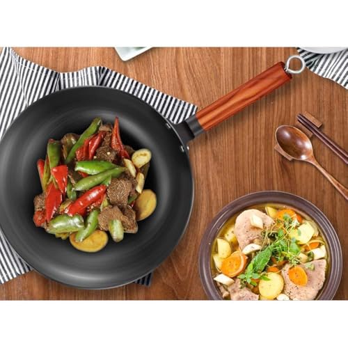 - Featuring a long wooden handle and a glass lid, this skillet offers ergonomic comfort and enhanced visibility during cooking. The lightweight design reduces fatigue, while the lid helps retain moisture and flavors—perfect for steaming, slow-cooking, or simmering Asian dishes with authentic taste.
