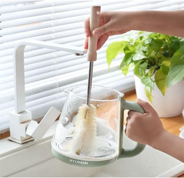 - ><strong>تصميم ذكي للوصول العميق:</strong> شعيرات مرنة بطبقات متعددة مصممة خصيصًا للوصول إلى قاع الزجاجات الطويلة والأكواب الضيقة بسهولة، مما يضمن تنظيف شامل لكل الزوايا بدون أي مجهود إضافي.</li>