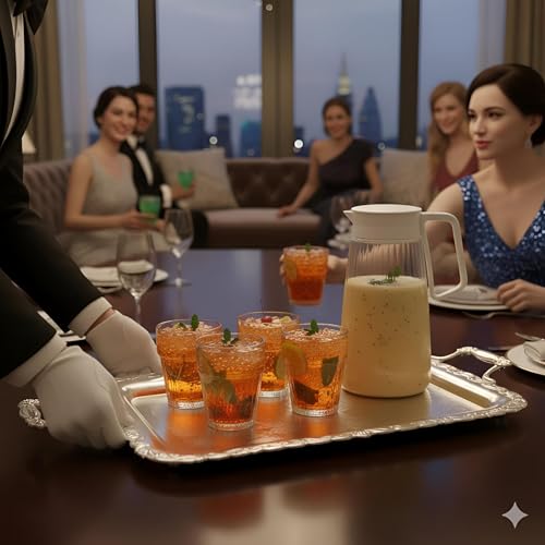 - يشتمل الطقم الكامل على إبريق أنيق واحد وأربعة أكواب متطابقة، بحجم مثالي لتقديم المشروبات الباردة والعصائر الطازجة.