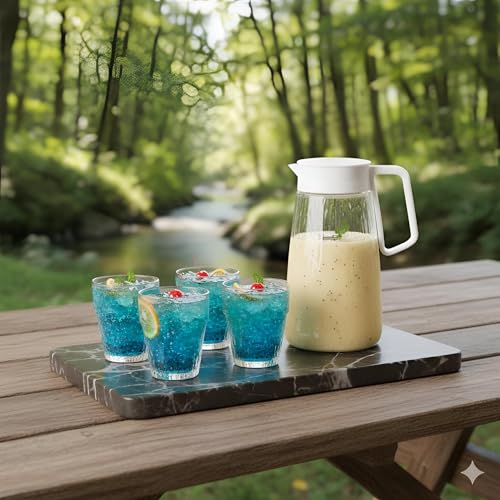 - يسمح فم الإبريق الواسع بالصب السهل دون انسكاب، بينما توفر الأكواب الزجاجية المتينة قبضة مريحة.