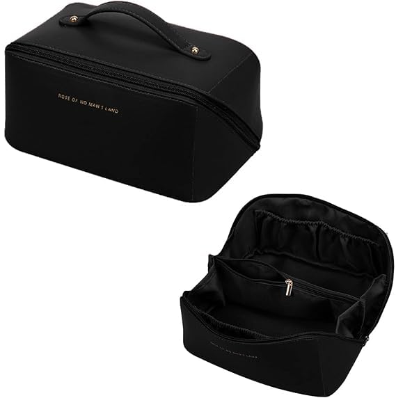 Generic - شنطة مكياج متعددة الاستخدام – تجمع جميع أدوات المكياج والإكسسوارات – خامة جلد عالية الجودة – مناسبة للسفر – متوفرة باللون البني والأسود T (اسود)