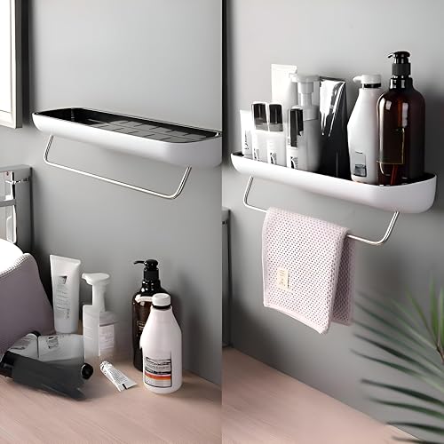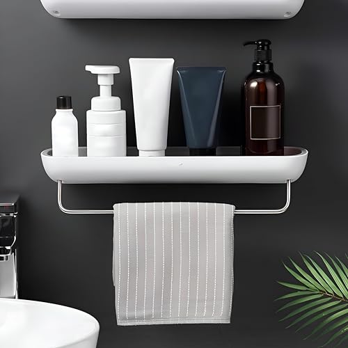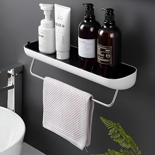 - Constructed from durable high-quality ABS and corrosion-resistant stainless steel, the shelf boasts a modern aesthetic with a thick, rust-resistant towel rod, offering robustness, long-lasting appeal, and a versatile design that complements contemporary bathroom decor.