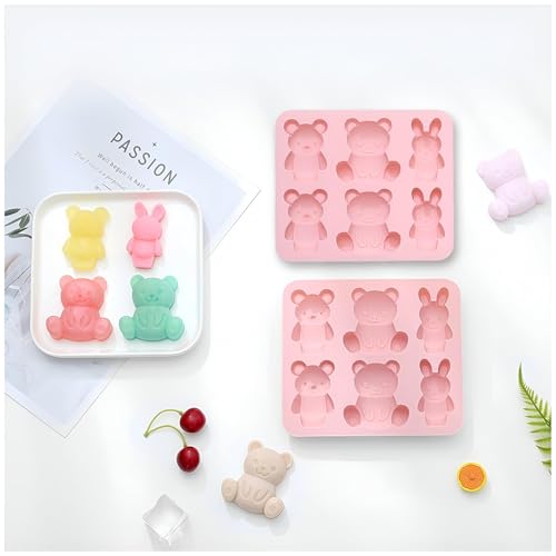 Generic - Multi-use Silicone Mold - Cartoon Shape Ice and Candy Mold, 6 Cavities, Silicone Dropper for Easy Pouring, Suitable for Oven, Microwave & Dishwasher, Set of 2, 15.6x13.8 cm Size