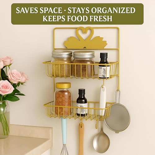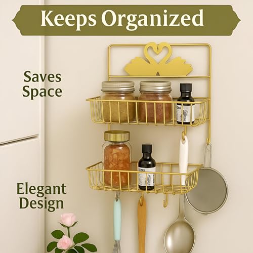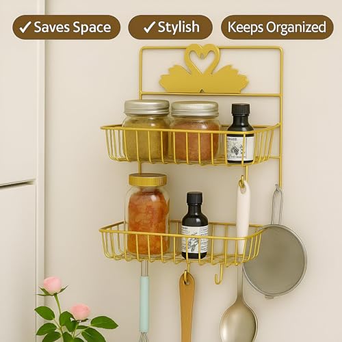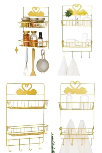 - The dual-layer metallic gold stand offers versatile organization for kitchens and bathrooms, making it easy to keep essentials like jars, bottles, shower products, and personal tools neatly arranged in a stylish manner that enhances any space.