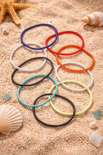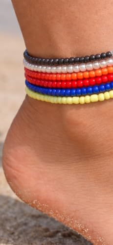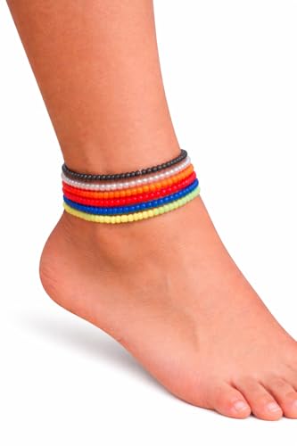 Generic - Multicolor Beaded Anklet Set, Stretch Ankle Bracelets, Beach Jewelry, Colorful Seed Beads (7 pieces)