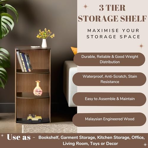 WT-EASYCARE - Multicolor Open Storage Shelf 3-Tier | Book Shelf | Bookcase for storage and display at home and in the office - (Black)