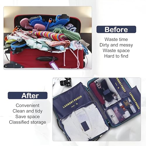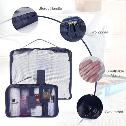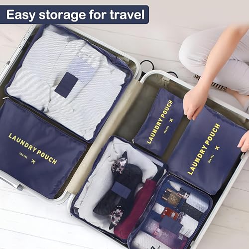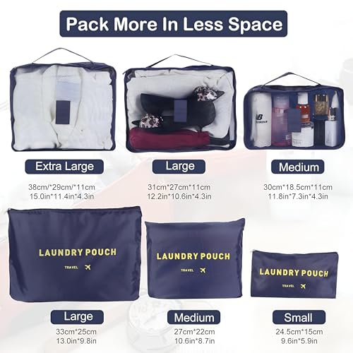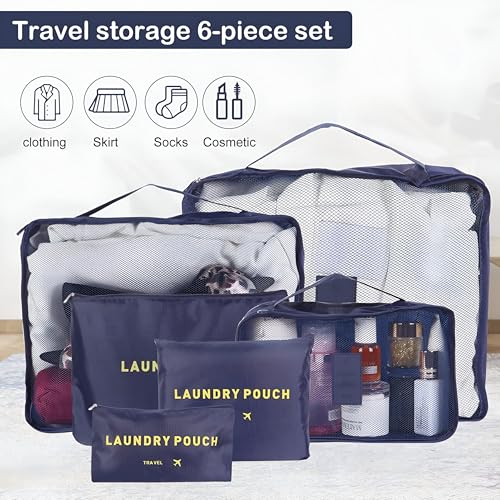 - Includes six pieces in three different sizes of packing cubes, which are perfectly designed for effective organization. The large cube holds 10 to 12 medium sized shirts, the medium cube holds 7 to 9 shirts, and the mini cube fits 5 to 6 shirts. Plus, there is a makeup bag, laundry bag, and a zipper bag, making it perfect for keeping everything tidy whether you are embating a short haven or a long trip.