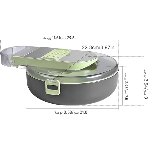 - استمتع بتنظيف خالٍ من المتاعب مع قطاعة الخضروات القابلة للفصل. بفضل سلة التصريف المميزة، تقلل قطاعة الخضروات هذه الوقت والفوضى. يتيح الهيكل الكبير التقطيع الآمن ويحمي يديك.