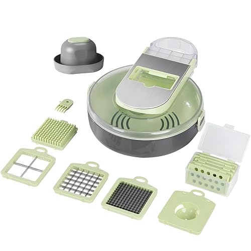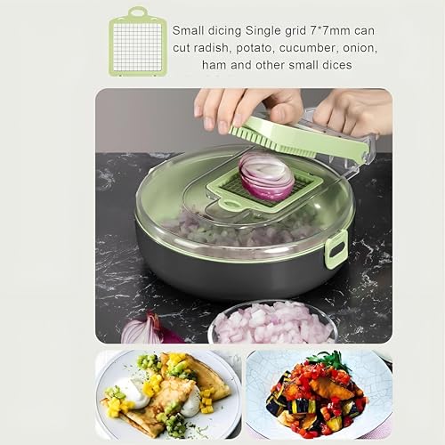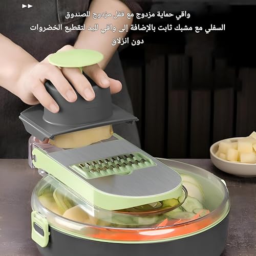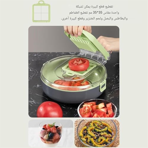 Generic - قطاعة متعددة الوظائف - قطاعة خضروات 9 في 1 مع شفرات قابلة للتبديل، مصنوعة من الستانلس ستيل 304، تتضمن سلة تصريف لتحضير الطعام وتقطيعه بدون مجهود.