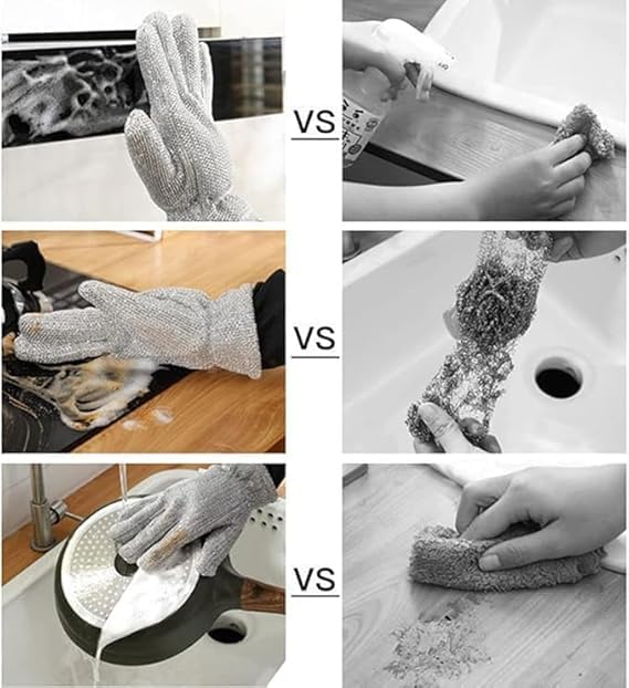 Generic - "Multifunctional Dishwashing Gloves Silicone Heat Insulation Water Insulation Gloves - Practical Premium Wire Kitchen Gloves for Cleaning Pots and Pans, Reusable (Silver, 2pec)
