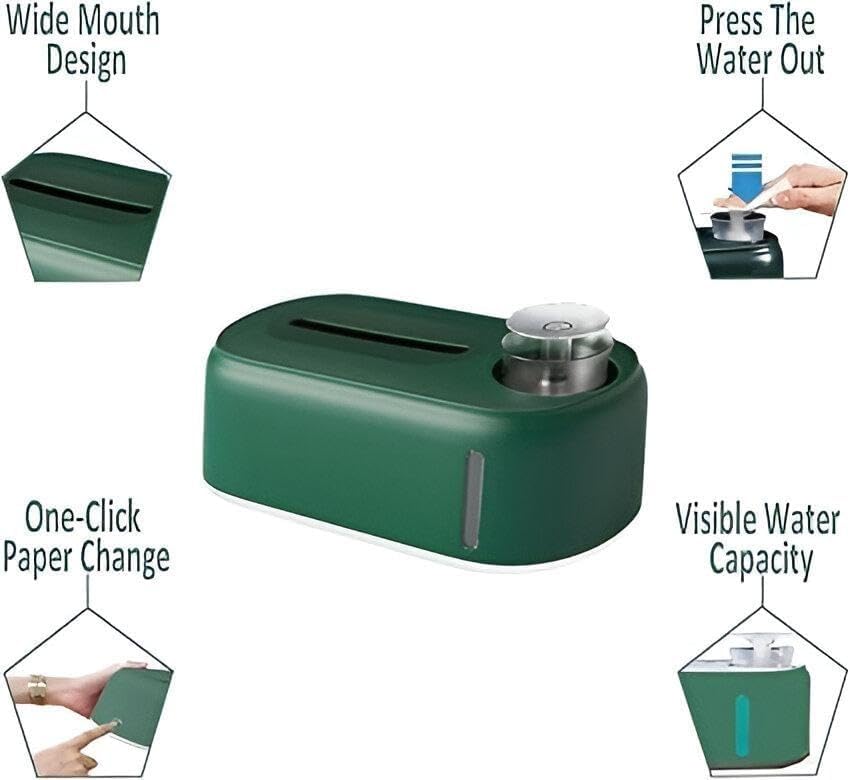 - وظيفة متعددة: تحتوي العلبة على مناديل ورقية وديسبنسر يمكن استخدامه مع مرطب أو مطهر.