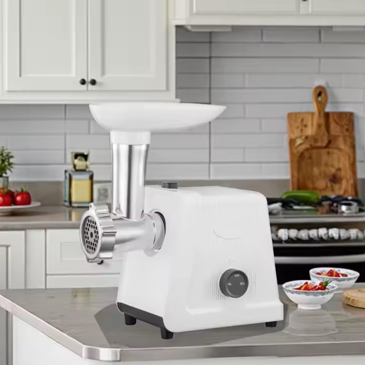 Generic - Multifunctional Electric Meat Grinder Machine 2500W, White, 3 Cutting Blades Size 3-5-7mm, Suitable for Meat Sausage Pasta