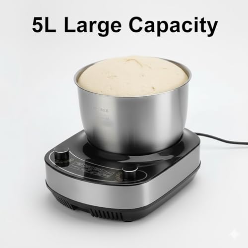 Generic - عجانة كهربائية متعددة الوظائف مع تخمير العجين – سعة 5 لتر – موتور نحاس 450 واط – وعاء ستانلس ستيل 304 – تحكم بالوقت – غطاء شفاف – ضمان 12 شهر