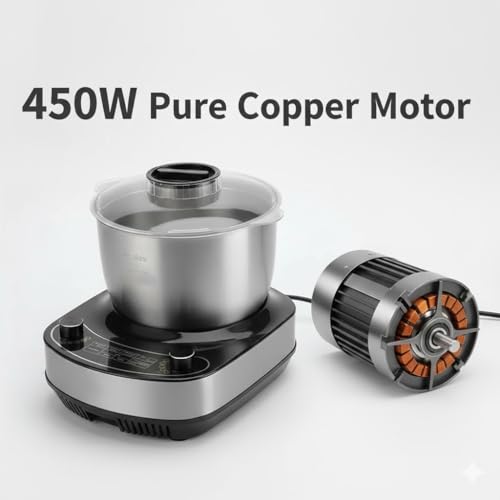 - محرك نحاس نقي 4435 بقوة 450 واط قوة ثابتة وأداء عالي لتحضير جميع أنواع العجين بدون إجهاد أو سخونة زائدة.