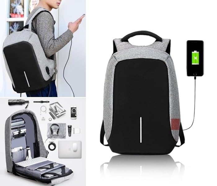 Generic - شنطة ظهر عصرية متعددة الوظائف ضد للسرقة مع منفذ USB، شنطة لاب توب