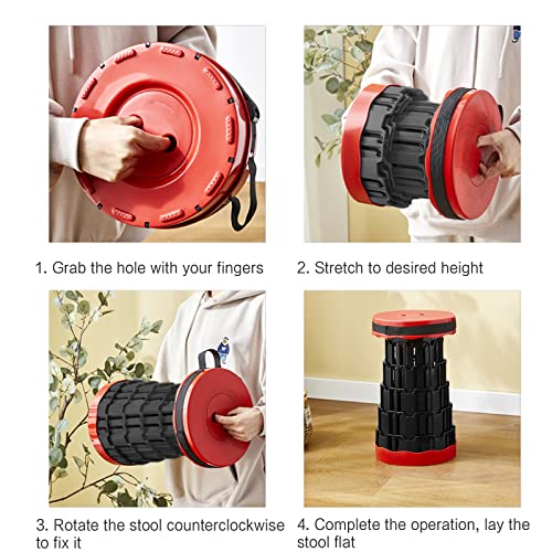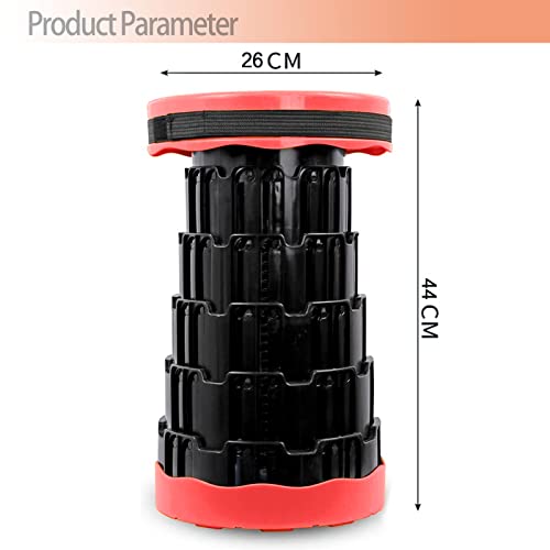 - 【Retractable Folding Stool】Camping Stool unique telescopic design. Holding the 2 buckles on the top and bottom of the portable telescopic stool, you can easily change its height within the range from 2.36 to 17.9 inches.