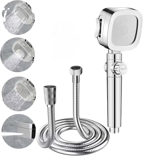 Generic - رأس دش يدوي عالي الضغط متعدد الوظائف مع خرطوم 1.5 متر (رأس دش محمول مصنوع من ABS مع زر إيقاف الماء بضغطة واحدة، و4 أوضاع لتدفق المياه، مزوّد بفلتر)