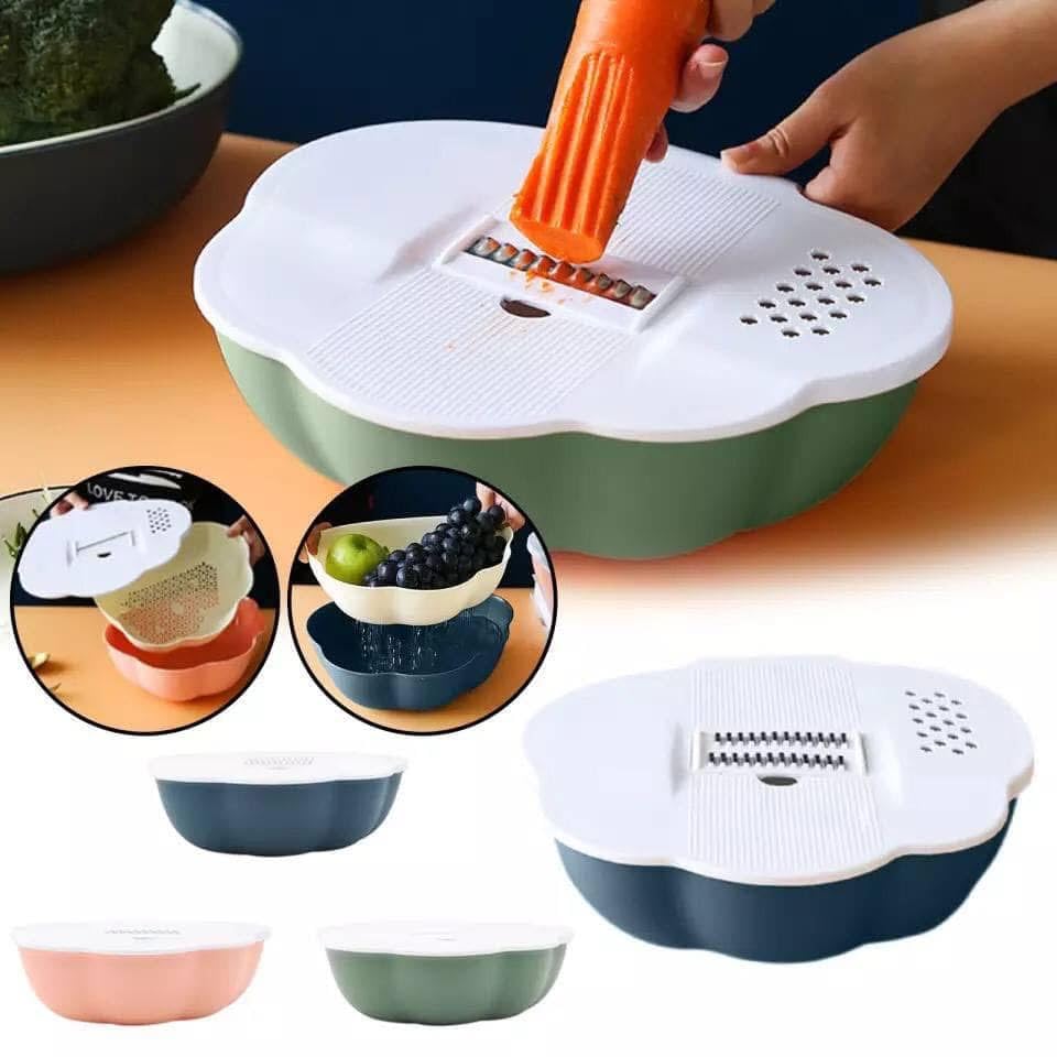 Generic - Multifunctional Kitchen Grater Bowl Set with Lid, Vegetable Slicer, Fruit Storage Container, 3-in-1 Food Prep Bowl, Available in Pink, Green, Navy