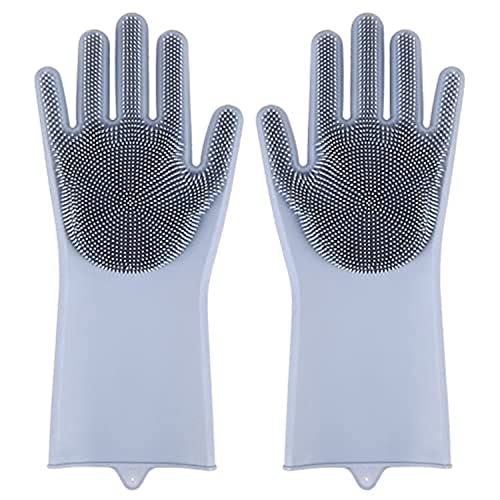 Generic - Multifunctional Magic Silicone Washing Cleaning Gloves Hand Glove for Kitchen, Bathroom, Dishwashing, Pet Grooming, Car Washing(Multi-Color 1 Pair) (Grey)