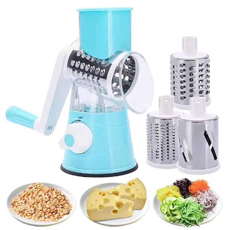 Generic - Multifunctional Manual Vegetable Slicer for Kitchen, 3 Interchangeable Blades, Vegetable Grater, Cheese, Nuts, Potato, Carrot, Cucumber, Salad