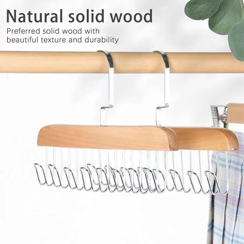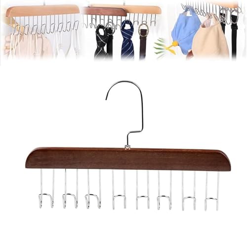 Spaceshoop - شماعات تخزين متعددة الوظائف غير قابلة للانزلاق، شماعة احزمة خشبية للخزانة، شماعات معاطف متعددة الخطافات، شماعات حمالة صدر علوية بدون اكمام، خطافات تنظيم اكسسوارات الخزانة للاحزمة وربطات العنق والاوشحة