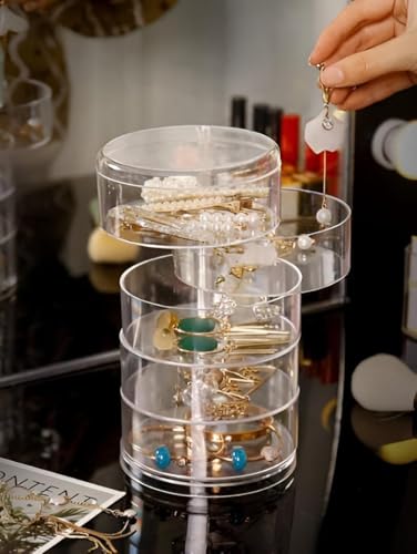 Generic - منظم متعدد الوظائف - صندوق مجوهرات بلاستيكي مقاوم للغبار بطبقات دوارة، مناسب للمكياج، اكسسوارات الشعر، واحتياجات تخزين السفر