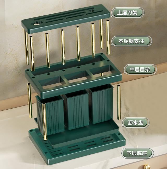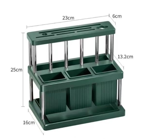 - Multifunctional ORGANIZATION The rack provides smart divisions to store knives, spoons, forks and small kitchen utensils, helping you to organize your tools conveniently and easily accessible. The versatile design makes it suitable for a table, beside sink, or in any space