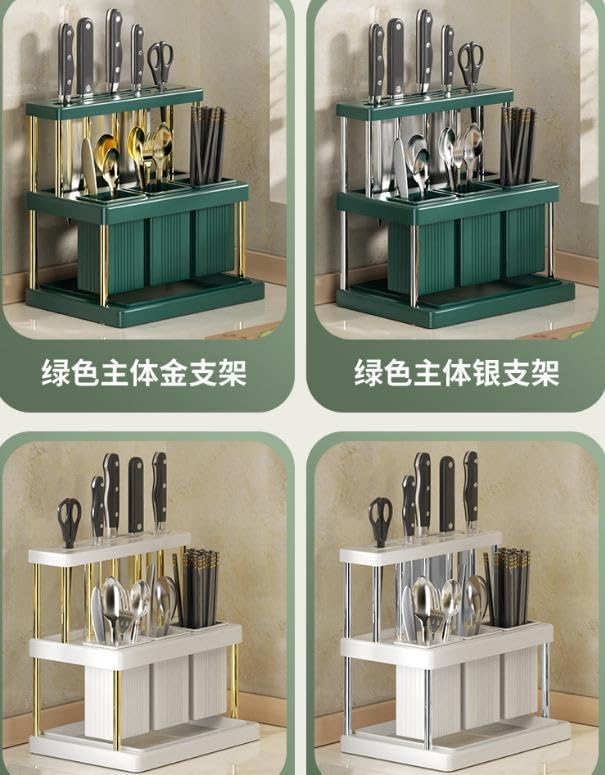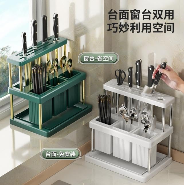 Generic - Multifunctional Premium Plastic Storage Rack for Kitchen Counter – Lightweight and Durable for Organizing Cutlery, Knives and Spoons – Modern Design with Smart Water Drainage and Utensil Holder