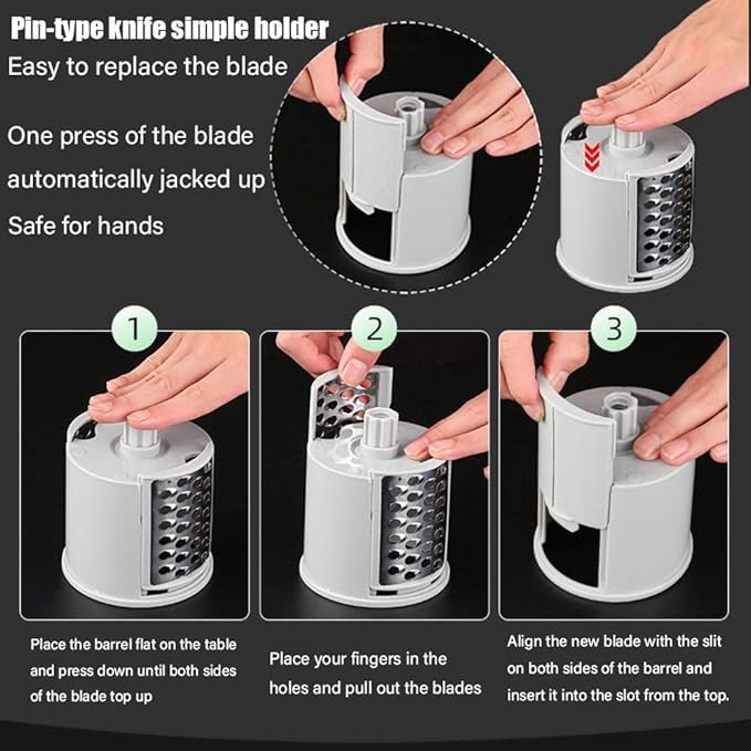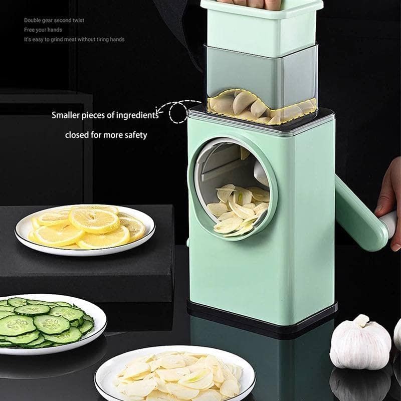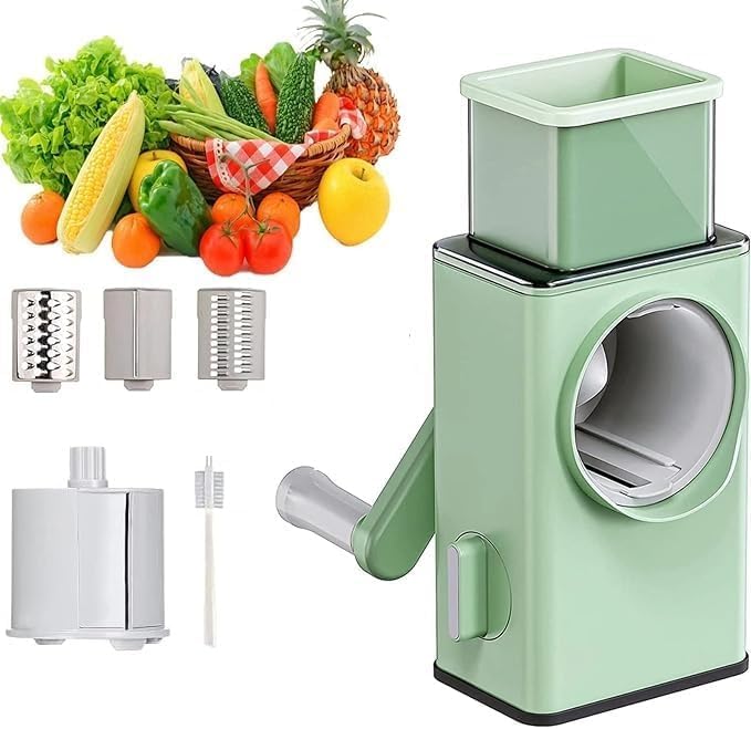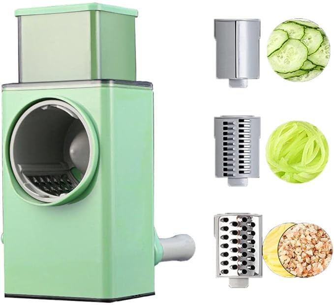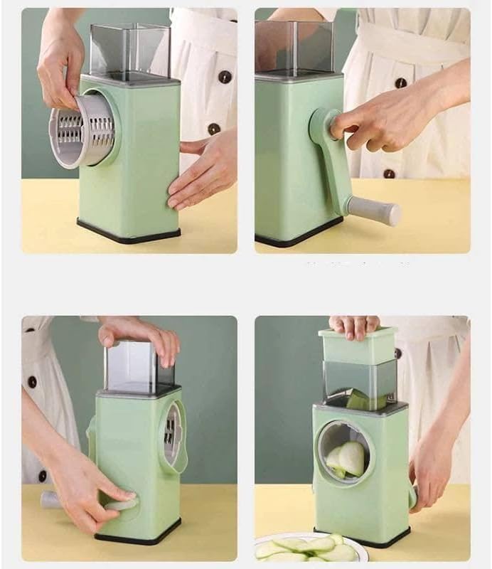 Generic - مبشرة جبن دوارة متعددة الوظائف - قطاعة خضار وفرامة جبن مع مقبض كبير، مخرج واسع، و3 شفرات دوارة لتقطيع الخضروات، البطاطس، الفجل، والمكسرات بسهولة