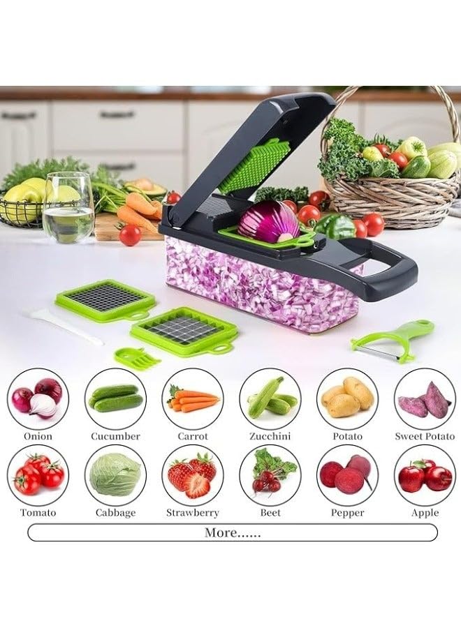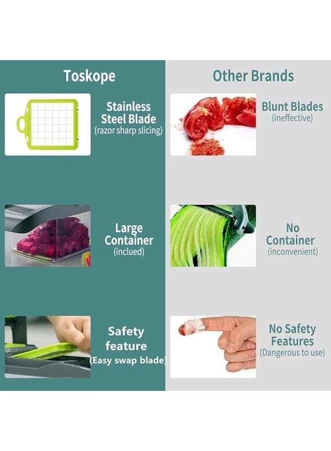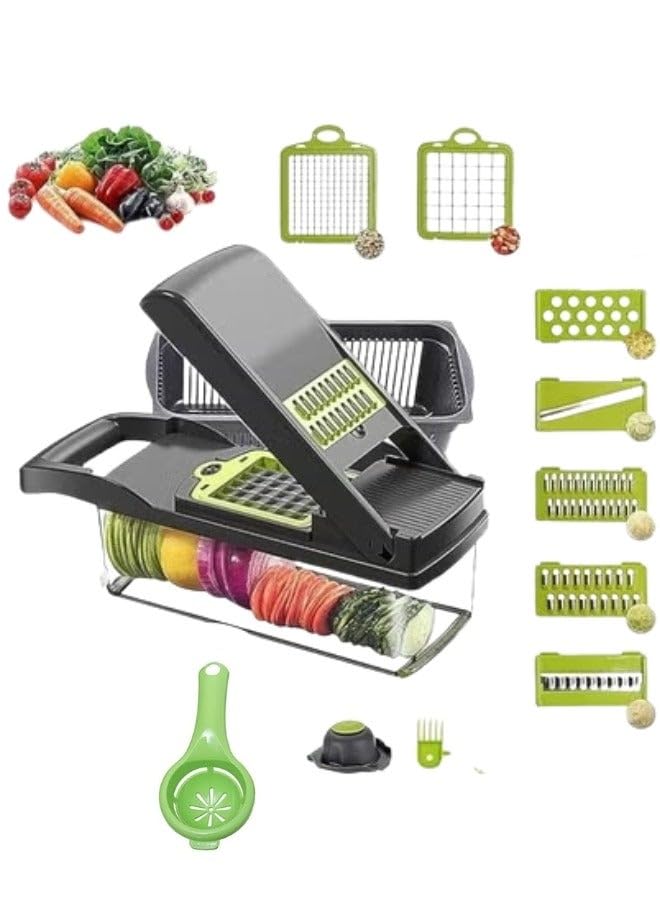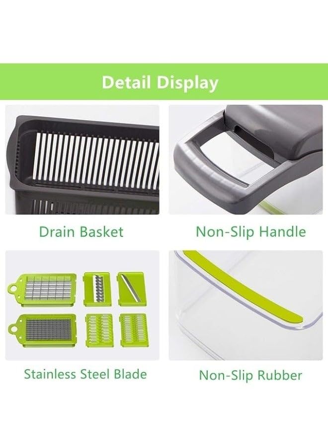 generic - قطاعة خضروات متعددة الوظائف، قطاعة طعام للبصل والسلطة والطماطم والخضروات مع شفرات تقطيع 12 قطعة (رمادي)
