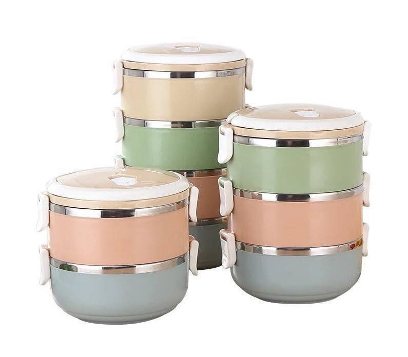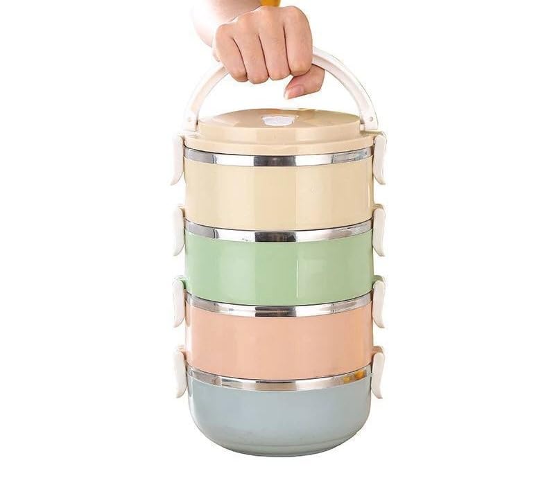 Generic - Multilayer Food Container, 4 Layers, Stainless Steel, Multi Color, with Carry Handle